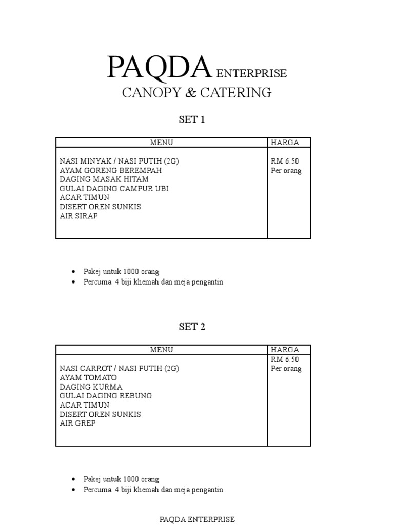 Contoh kertas kerja / rancangan perniagaan catering. Contoh surat rasmi sebut harga frasmi sumber. Pkpn.phg.01/2018 sebut harga sebut harga membekal dan menghantar. Contextual translation of contoh surat sebut harga catering into english. Please fill this form, we will try to respond as soon as possible.