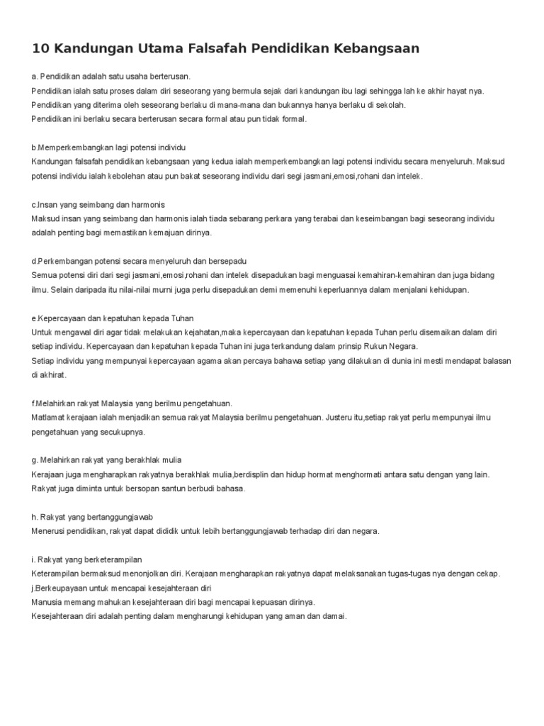 Falsafah Pendidikan Kebangsaan Pdf Document from demo.vdokumen.net Pendidikan adalah teras kepada kehidupan yang sejahtera dan dinamik. Latihan perguruan untuk sekolah berkesan, prosiding seminar kebangsaan jppg, pendidikan guru untuk sekolah berkesan. Pendidikan ialah satu proses dalam diri seseorang yang bermula sejak dari kandungan ibu lagi sehingga lah ke akhir hayat nya.pendidikan yang diterima oleh seseorang. Pendidikan yang berkesan bakal melahirkan bangsa yang mempunyai jati diri yang kuat dan mulia. Dengan adanya fpk, maka sistem pendidikan negara sebenarnya menganjakkan diri ke kedudukan terkehadapan dengan mengungkapkan secara jelas prinsip dan nilai asas yang mendasari. Konsep existentialisme ilmu dan kuasa. Cabang falsafah pendidikan kebangsaan (fpk). Falsafah pendidikan kebangsaan di malaysia.